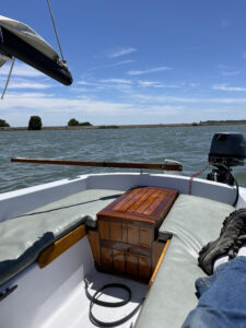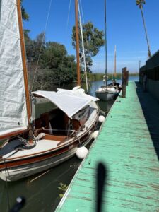 Hey John, I’m not sure what I’ve learned from this experience or if there is anything to learn at all. The volume of events that can happen after one miscalculation is truly shocking. I have sailed this little boat hundreds of miles along the Pacific coast, all the way to Mexico and out to islands 20+ miles off shore. I’m not as experienced as many but I’m not green either. River sailing, however, is a different thing all together, as many readers in the U.K. of course, already know. There are a thousand things that could go wrong on a boat. To put it in astronomical terms you could say that when all the stars line up and everything works as it should, you have a grand time and you come home alive. But it is possible that the stars can all line up in reverse, in which case, not so much. Manipulating these stars is, I guess, what it is all about. It’s the whole game. On the one hand, there is just no chance that the sequence of events that happened on my boat could ever happen again. On the other hand, I do wish I hadn’t just said that. I’ll just tell the story as it happened. My boat is a Venture 21, hull #40, 1968. It wasn’t much of a boat. I bought it 41 years ago when I had no money so I could just get out on the water and teach my kids to sail and love the ocean. I did that and spent the next 40 years rebuilding and beefing up every piece of it. The older it got and the more I fixed it up the harder it was to get rid of. It’s actually a tough little boat. So, I felt confident taking it to the San Francisco/ Sacramento Delta area and sailing with the Traditional Small Craft- Assn (TSCA) guys, of which Jake and his Sally (AS Wenda) are members. I had brought Chris, my buddy, with me who had never sailed before. There were six boats in our group and we launched from a place called Korth’s Pirates Lair at the intersection of the San Joaquin and the Mokelumne rivers. This place is set way back in time. Nearly all of this group had been cruising this Delta area for at least the last 20+ years, an enormous amount of experience. I’m the new guy and in typical new guy fashion, I’m afraid I spent too much time the first day socializing and not enough on gathering intel. First mistake. | ||||