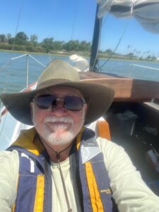 Bob was coming around again. I now have the tow rope as the last time he had let it go and I hauled it in. I have one big 8” cleat on my bow for securing an anchor line and my line was tight around that cleat and I dared not mess with it. If I’m going to get towed, the tow rope has to go on the same cleat, on top of the anchor line. That means I will have to pull the anchor at the same time I’m getting towed off and I won’t be able to untie it from the cleat. This is going to take a lot of coordination and luck. I am certain my anchor will be buried deep in the mud and will have to be broken free to get it up. I will have to use the force of the tow, Bob’s boat, to break it free and if I am unable to get it up quickly it will just bury itself again. If I do get it up, I can’t untie it because the tow rope will be on top. It will have to be just piled up on deck in a heap with all the chain, anchor and mud. I call to Chris to get me a dock line to secure it with so I don’t lose it over the side but he can’t hear me over the wind. All this on a pitching foredeck, kneeling, with my arm around the forestay. I’ll have one hand to get the anchor up and one hand to stay on the boat. Who gets towed off an anchorage six feet from rocks in high winds. No one. Bob is coming around again, same path as before. I could see him trying to stay further out but the wind is pushing him. He yells at me “You got one chance to throw it.” I yelled back grinning “And you got one chance to catch it”. I coiled it up and heaved it as if he was twice as far. Perfect throw. We both tied off and as the slack tightened, I began to haul on the anchor. It was stuck and Bob was pulling with everything he had. I began to reach for my knife and then it broke free. I quickly hauled it on deck but noticed we still had not moved. The keel was on the pipe. The bow had not turned toward the tow. Somehow it had wedged between the pipe and some other obstruction. While I was trying to figure out what to do about this new emergency it suddenly came loose with a jerk and was free. I began to neaten up the foredeck as best I could and then I heard Bob yelling “Steer the boat!”. I yelled back to Chris to steer and he yelled back and said “The rudder is off”. You can’t tow a boat with no rudder as the boat just yaws back and forth in a crazy uncontrollable way. It was the first time I noticed there was no rudder. It was laying on the seat in the cockpit. I asked Chris why he took off the rudder and he said it was hitting the rocks and I said to take it off. Sure enough, about 2” was ground off on the bottom of the rudder. As I said, things were happening quickly. I set about attaching the rudder while underway, being towed. If you’ve ever tried to install a rudder while underway you will realize it is nearly impossible. You have to fit the gudgeon (eye) into the pintle (spike). There are two, one on top and one on bottom and they are different lengths. One has to go in before the other. The rudder (heavy) is flying all over the place because the boat is underway. We can’t stop because, well, we are too close to the rocks. Finally, after a few dozen close encounters and Chris hanging onto my belt the gudgeons and pintles are one. We settle down to a steady tow and away from the rocks. No more rocks, no more pipe. I start cleaning some of the mud off the boat and we both have something to eat and some water which we had no time for just a few minutes earlier. Pretty soon we are across the San Joaquin and turn into Three Mile Slough. We are maybe 30 minutes into being towed when we notice black smoke out of Bob’s exhaust. Bob’s water pump has quit and his engine has overheated. Now we are two disabled boats tied together in the middle of a shipping channel. Tugs and small tankers sometimes use this channel as a shortcut between the Sacramento and San Joaquin rivers. We both toss out our anchors. Because we were tethered together and because of opposing tide, current and wind this produced a dangerous predicament. Once again, we were in it. My boat spun around with such force it sheared off all the stanchions on the port side and splintered my bowsprit. Pretty soon the boat found some equilibrium and we settled down in the lee of Bob’s boat. Chris and I started putting some attention on the gas line. We soon figured out how to fix it. I took the plastic dart and whittled it down so it fit the inside of the hose and taped the whole thing together. Easy peasy. Why didn’t we do this hours ago? There was simply not a calm second to come up with the idea. Too much chaos. We slipped it on and the motor started right up. I yelled over to Bob and told him we now had the engine back on line and asked him if he would like a tow. He yelled back “We don’t need no stinking tow! We’re sailors.” Bob had talked to one of the other guys in the group who had a son that worked in a parts store nearby. They had 5 of what he needed in stock and they were going to drive it down to a pier on Three Mile Slough. Mike was picking it up as Chris and I sailed past on our way to Rio Vista. On the way up the slough, we passed Sally and Jake headed back down to help Bob. Sally, on a beam reach, just leans over and flies. We made it the next 4 miles up the Sacramento River to Rio Vista and tied up at the guest dock. Somewhere I had wrenched my back and could barely walk but I managed to make it to the pub where I bought drinks and dinner for Chris and Don, the only other one of our group who had made it this far. I got a call from Mike who gave the good news that Bob was fixed and they were all anchored on the slough. Jake had delivered the part he needed and climbed onboard and rebuilt his pump. I told him I was calling it. Too much damage and I was injured. He told me not to feel bad about it, that the same thing that happened to him the first time he went. I pulled out the next morning and noticed a big crack 